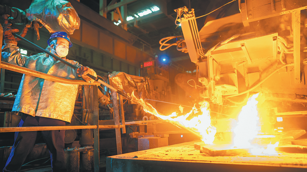 Служител работи в съоръжение за леене в Maanshan, провинция Anhui, на 7 август. ZHANG MINGWEI/ЗА КИТАЙ ДАЙЛИ