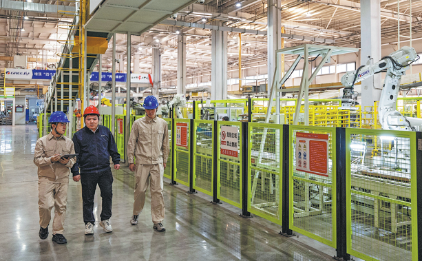 Членове на персонала от State Grid Jiangning извършват проверка на електрическото оборудване в Gree Electric Appliances (Nanjing) Co Ltd, предоставяйки консултантски услуги за енергийна ефективност, в Нанкин, провинция Дзянсу. ZHAO ZILING/ЗА КИТАЙ ЕЖЕДНЕВНИК