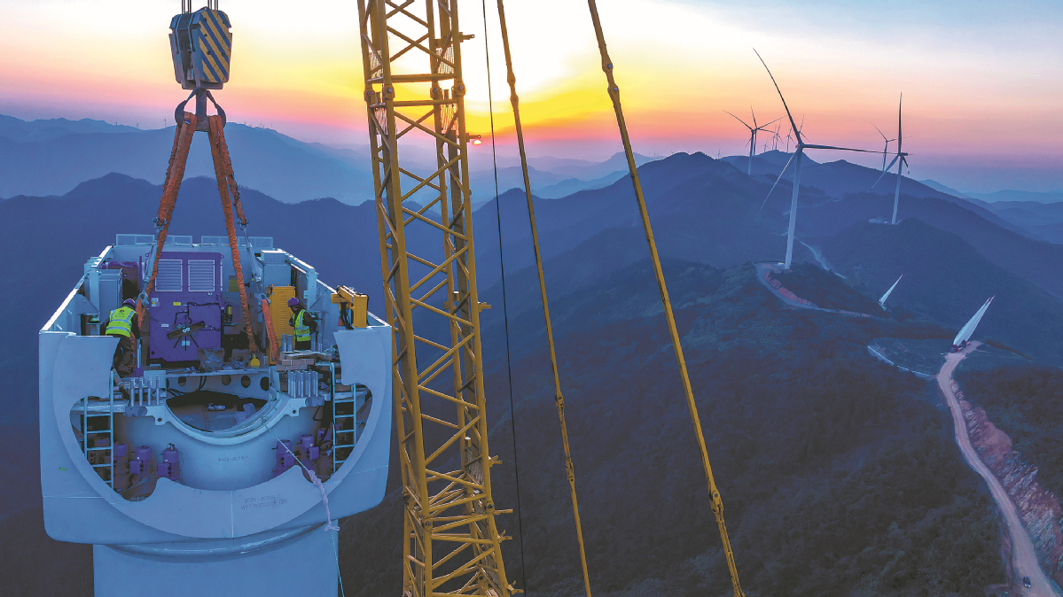 Работници инсталират вятърни турбини на строителна площадка на вятърен парк в Ruichang, провинция Jiangxi, на 19 декември. WEI DONGSHENG/ЗА КИТАЙ ДАЙЛИ