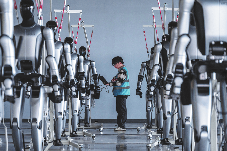 Техник проверява хуманоидни роботи в технологичен център в Zigong, провинция Съчуан. HE HAIYANG/ЗА КИТАЙ ДАЙЛИ
