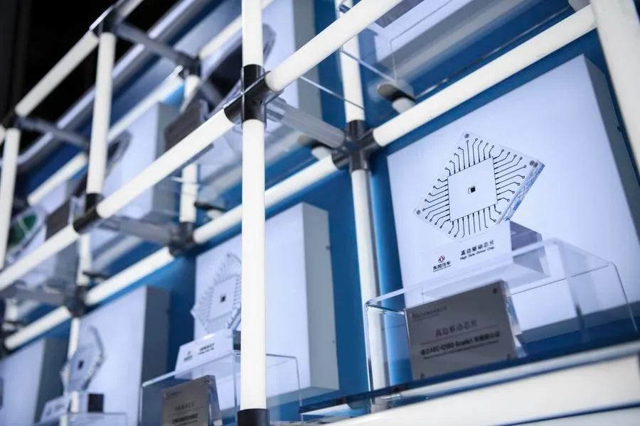 Чиповете са изложени в изложбената зона на провинция Хубей в Централен Китай на второто Китайско международно изложение за верига за доставки в Пекин, Китай, 27 ноември 2024 г. [Photo/Xinhua]