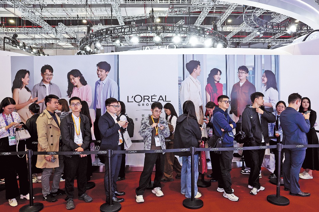 Посетителите се събират на щанда на L’Oreal по време на осмото Китайско международно изложение за внос в Шанхай в сряда. WANG JING/КИТАЙ ДЕЙЛИ