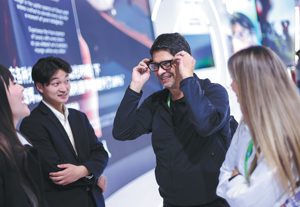 Посетителите на осмия CIIE в Шанхай проявяват интерес към Nuance Audio Glasses на Essilor-Luxottica, продукт, който съчетава авангардни аудио-визуални технологии. CHINA DAILY
