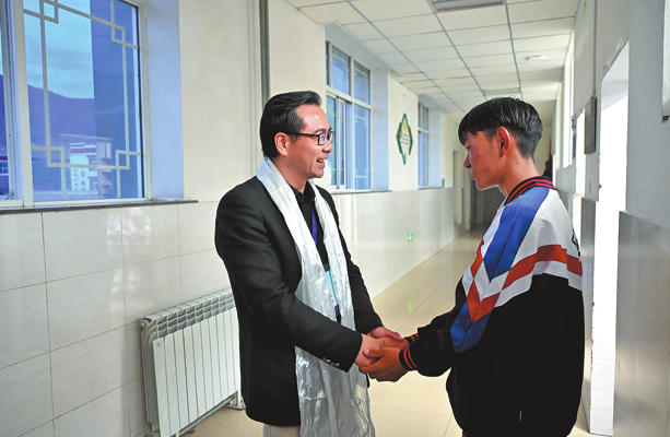 В една зимна сутрин в Лхаса, когато температурата пада под -10 C, директорът Qiu Xiaoqiang се разхожда от класна стая в класна стая в експерименталното средно училище Lhasa-Jiangsu, дъхът му се вижда в разредения въздух.