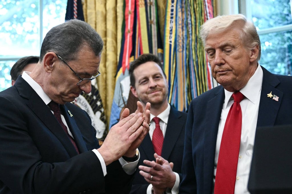 Изпълнителният директор на Pfizer Алберт Бурла (вляво) аплодира, когато президентът на САЩ Доналд Тръмп прави съобщение за лекарства, отпускани по лекарско предписание в Овалния кабинет във вторник. Снимка: AFPИзпълнителният директор на Pfizer Алберт Бурла (вляво) аплодира, когато президентът на САЩ Доналд Тръмп прави съобщение за лекарства, отпускани по лекарско предписание в Овалния кабинет във вторник. Снимка: AFP