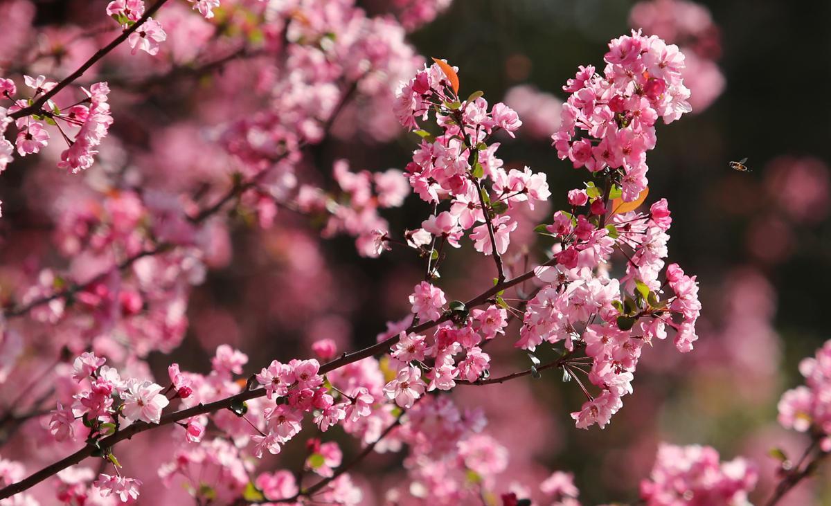 Зоологическата градина Кунминг в провинция Юнан наскоро оживя от пролетта, тъй като цветята на раците започнаха да цъфтят и черешовите цветове започнаха да цъфтят, заобикаляйки животните в ослепителни нюанси на розово.